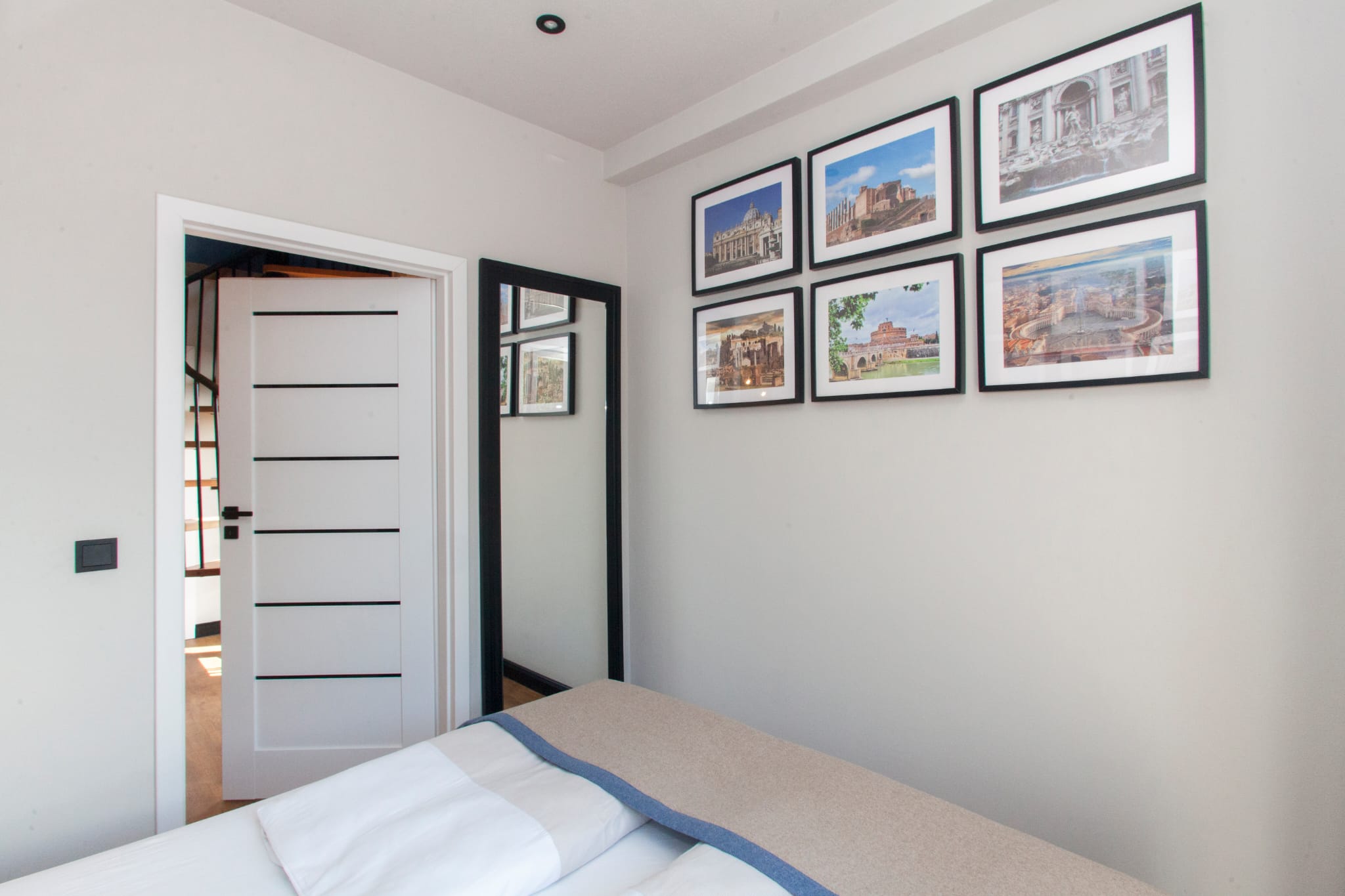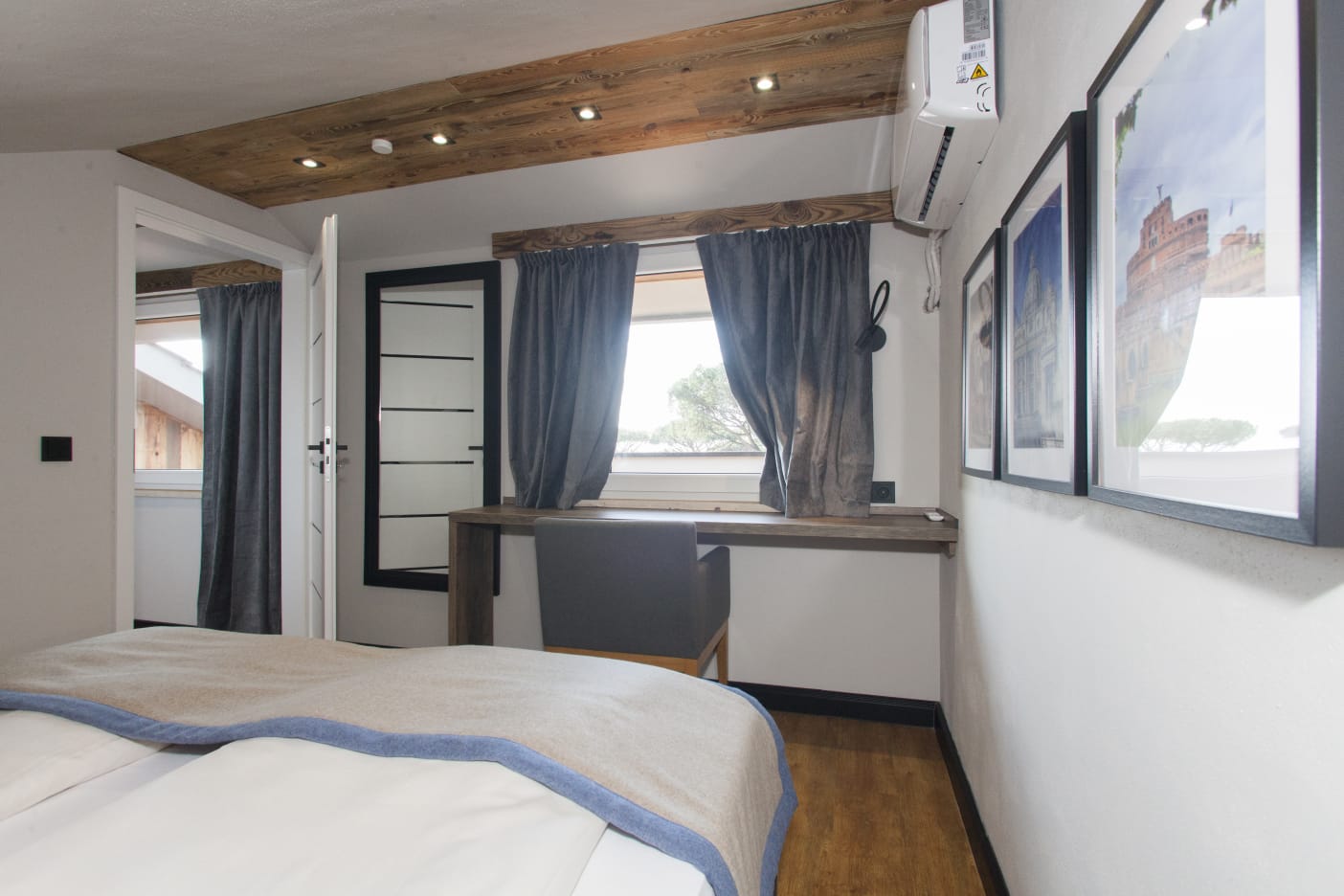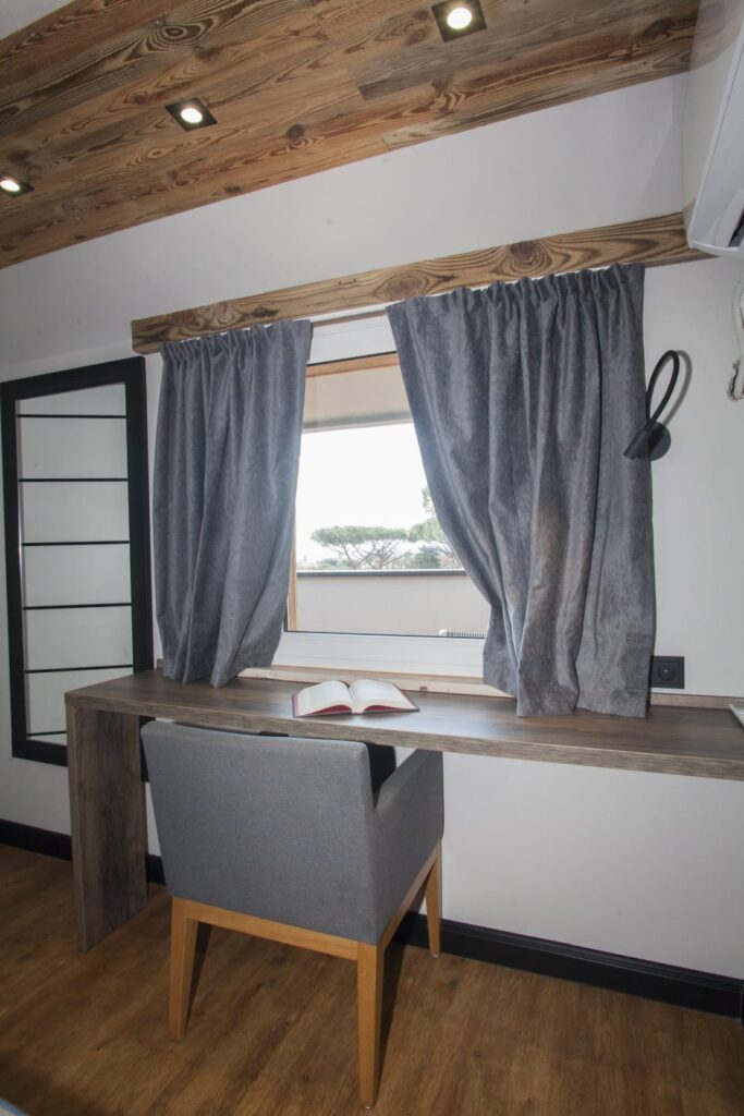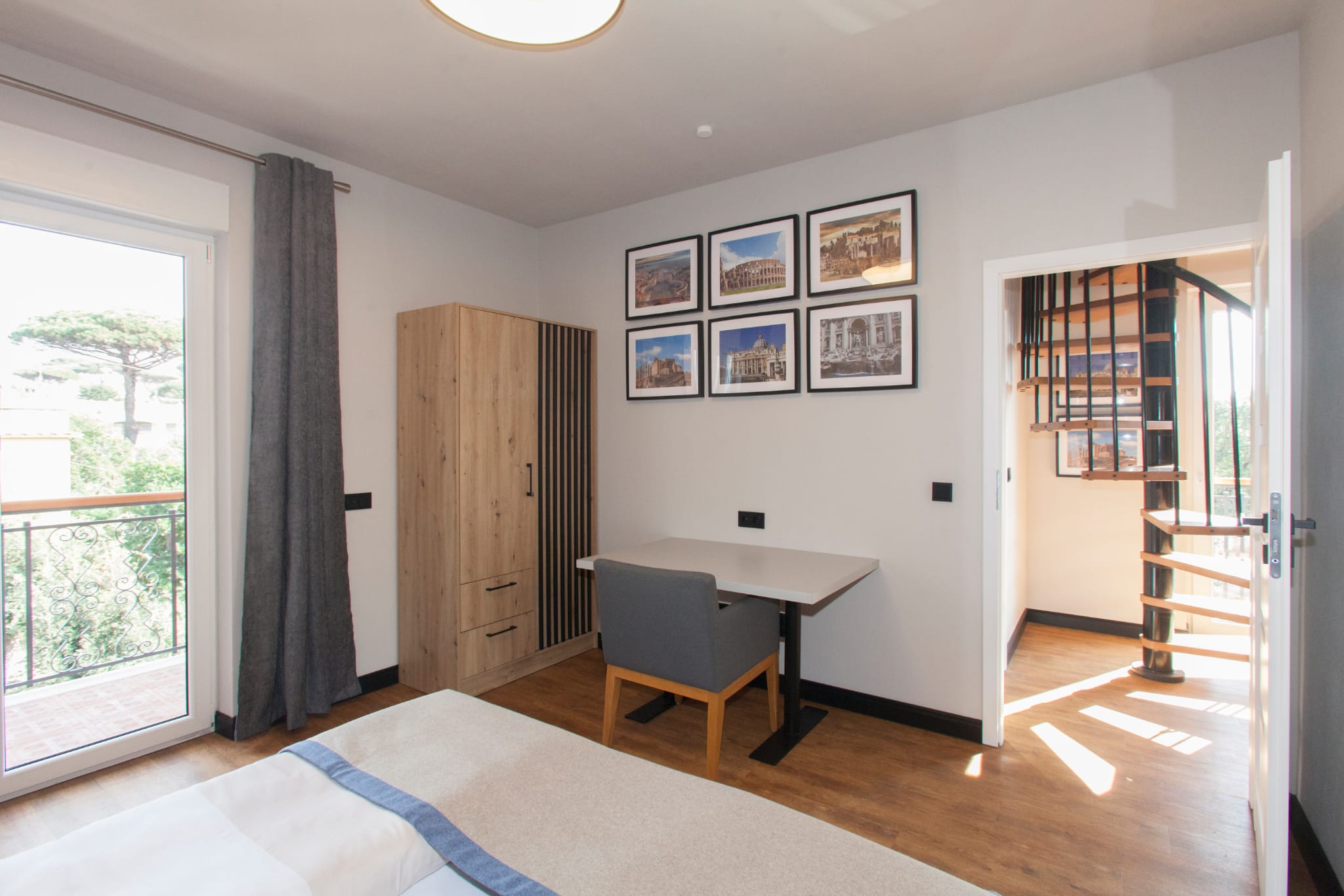 The first bedroom is located on the first floor. It has a comfortable double bed (can be separated into two singles) and a dedicated workspace.