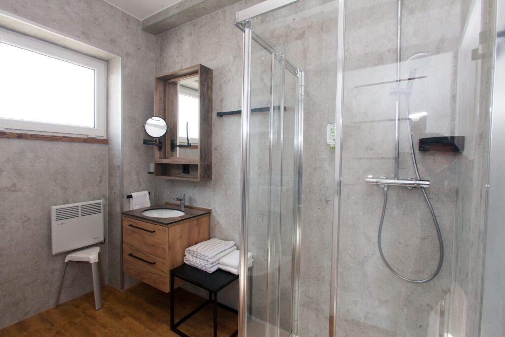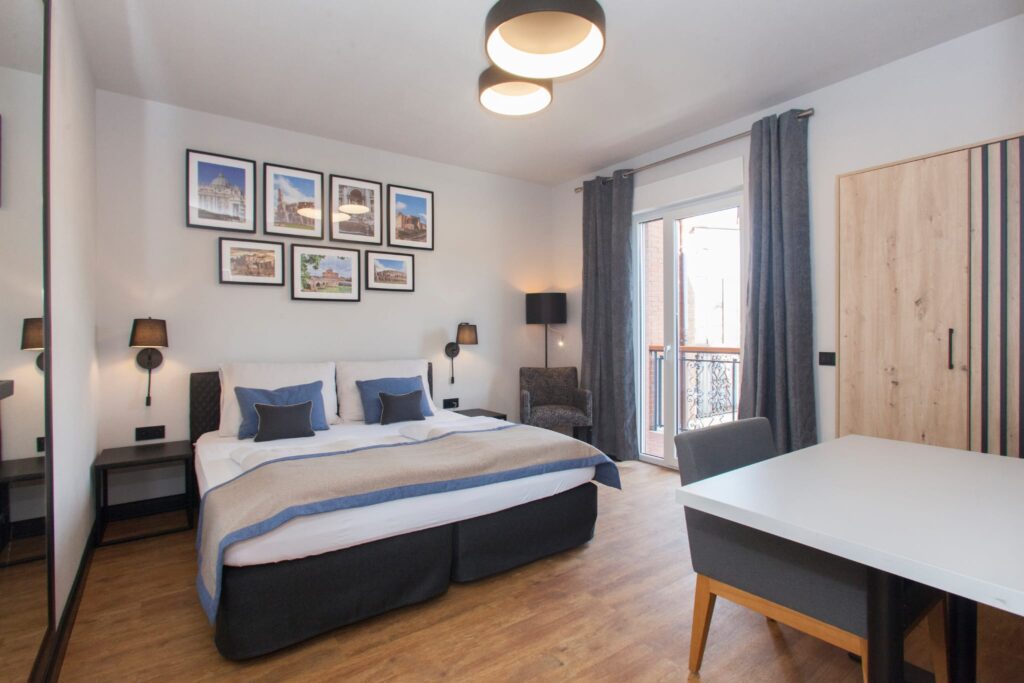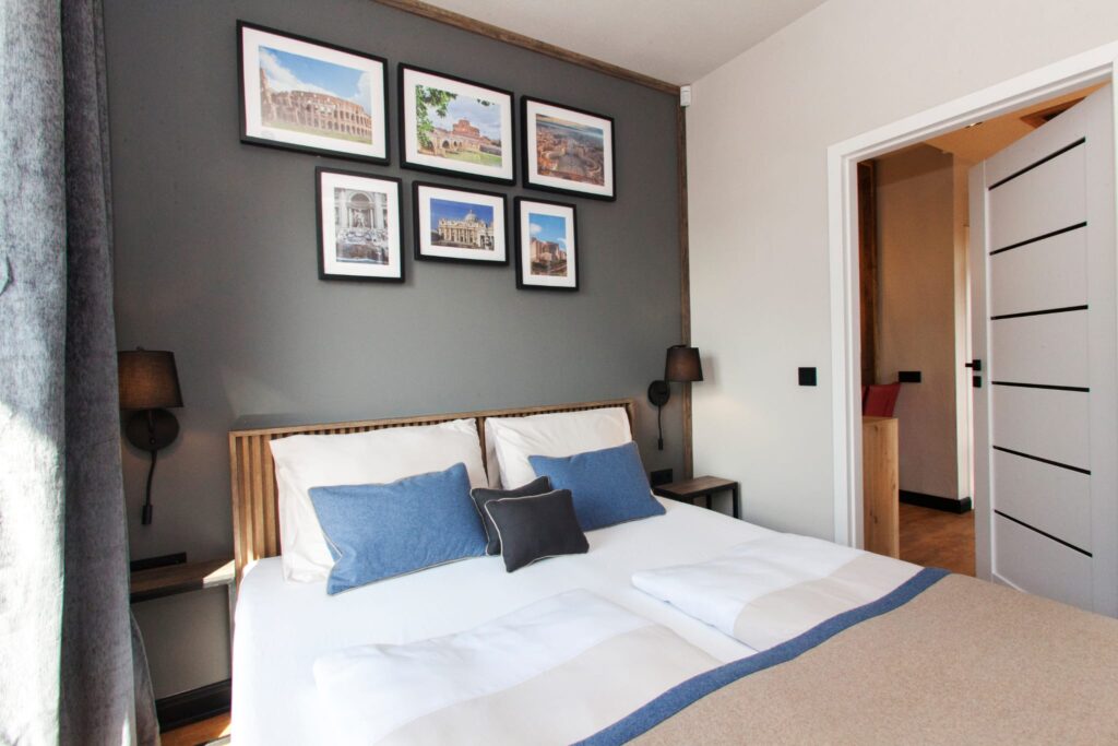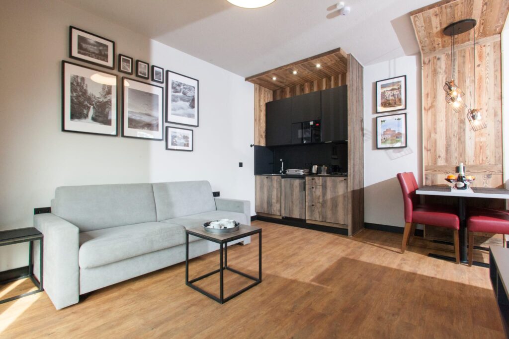 The spacious living room with a comfortable sofa will be the perfect place to relax – whether with morning coffee or an evening drink. It can also serve as an additional bedroom for two people.