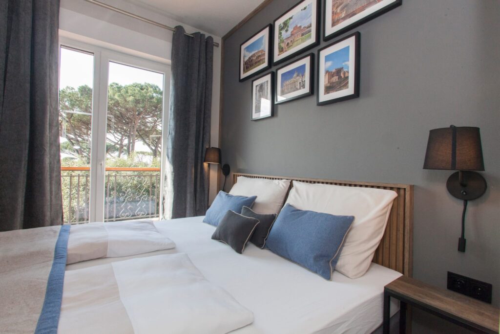 The Penthouse Suite is an exclusive apartment, consisting of a living room and 3 bedrooms, so it can accommodate up to 8 people. The apartment is located on the 2nd floor and has 4 balconies, two of which overlook the sea.